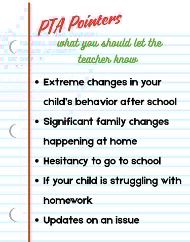 PTA is an opportunity to connect with your child’s teacher and work together to support your child’s learning and better understand their needs.